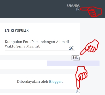 Bagi Anda yang merasa bahwa icon edit di blog ternayata jarang dipakai dan/atau Anda merasa risih melihatnya, maka Anda sanggup menghilangkan icon edit gambar tang dan kunci pas di blog dengan langkah-langkah sebagai berikut:
